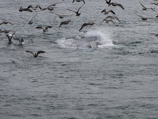 We saw three fin whales -- the second largest species of whales. Each citing began with the gulls in a feeding frenzy (much like our first lunch buffet on board (had these people never seen food before???)) and pilot dolphins 'herding' huge schools of herring.